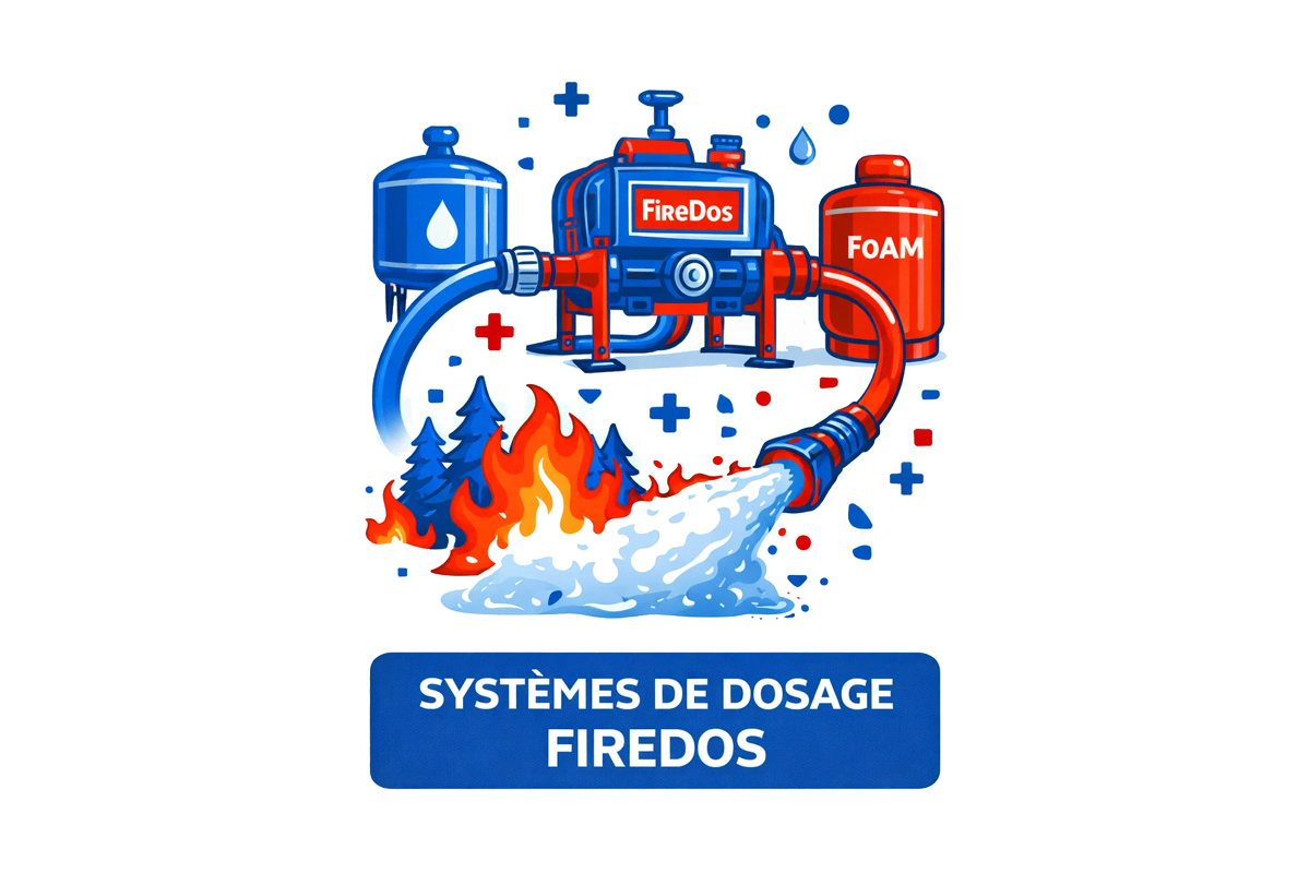 Incendie : lances, tuyaux, systèmes de dosage, remorques incendie.